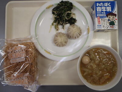 今日の給食は、皿うどん! 初めてのメニューです。 揚げ中華めんに各自で具をかけていただきます。 ショウロンポウとナムルもついて最高の給食! とってもおいしかったです。 給食センターの皆様、ありがとうございました。