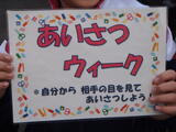 あいさつウィーク(11/6) 投稿: 南小 (08:18) 今週は11月のあいさつウィークです。 今朝も担当の児童が幟をもって 正門に立ちました。 朝はだいぶ寒くなってきましたが あいさつは元気に。 おはようございます! Tweet -